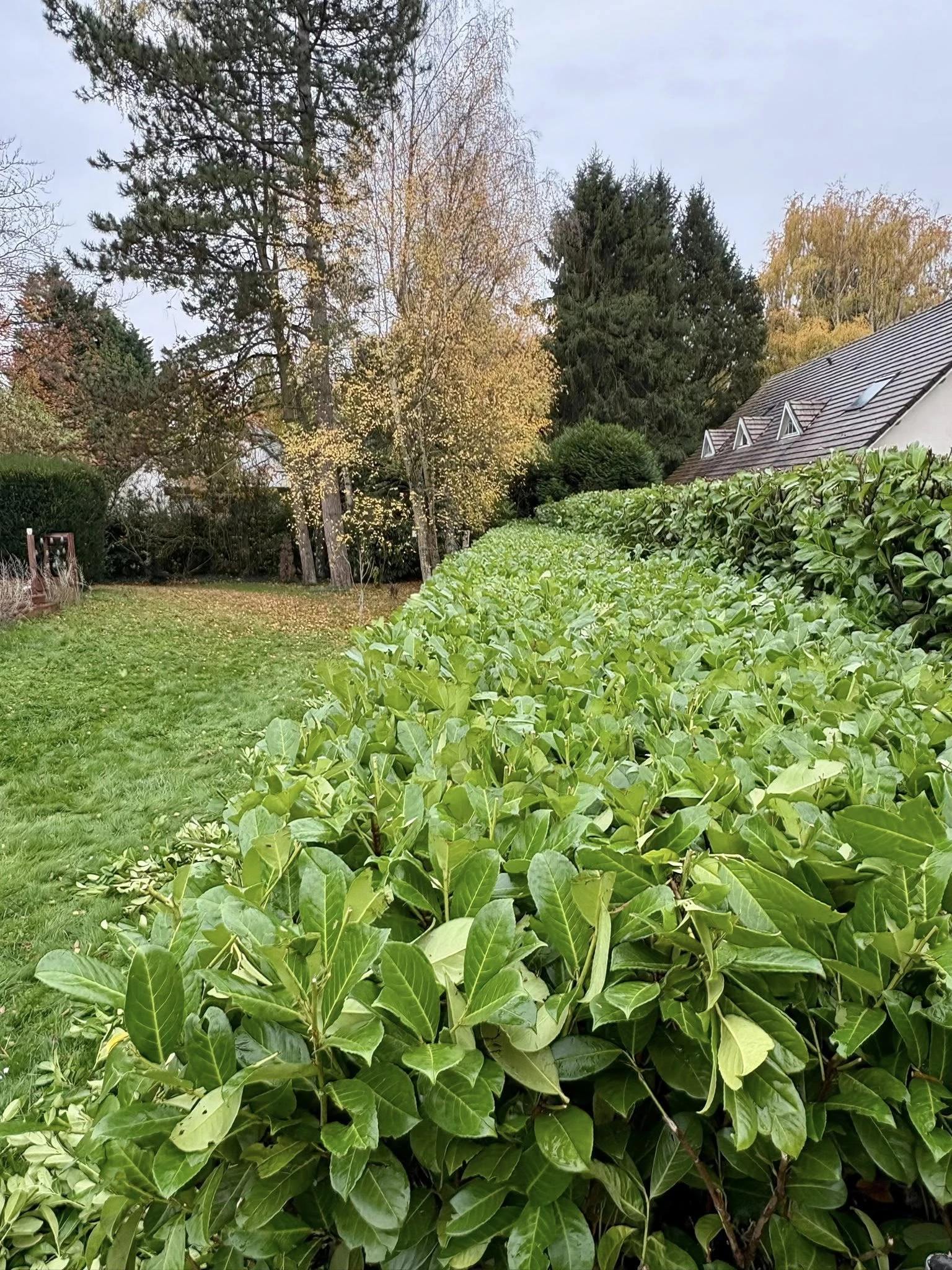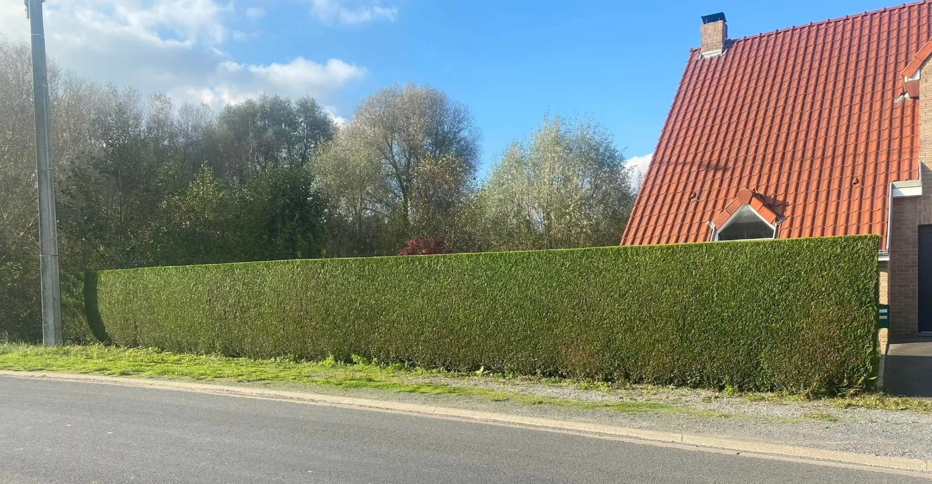 Grâce à une coupe régulière et équilibrée, l’objectif était aussi de remplir les “trous” visuels dans la haie, souvent causés par une croissance inégale ou un entretien irrégulier. Résultat : une haie dense, verte et opaque, parfaite pour protéger du vent ou des regards indiscrets.