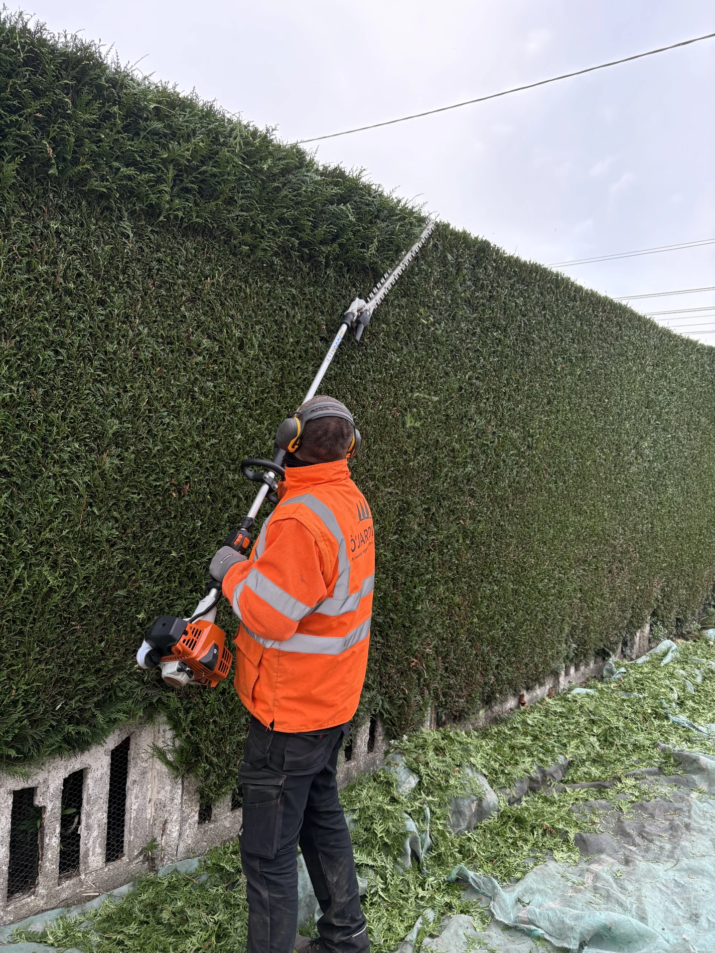 L’équipe O'Jardin a utilisé un taille-haie électrique performant, garantissant une coupe précise, sans vibrations ni émissions polluantes, idéal pour les environnements résidentiels. Ce choix d’équipement permet un travail silencieux et respectueux de l’environnement.